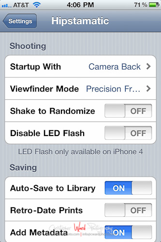 I’ve been snapping away with my iPhone lately. The app I have been using the most is Hipstamatic. I started with a few issues that bugged me, so I wanted to tell you how I set it up. This is not how everyone needs to set their camera up, just what works for me.