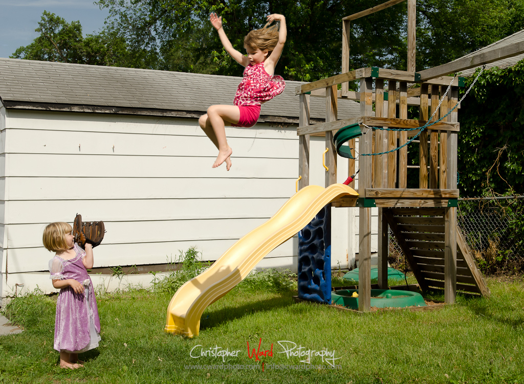 I think the concept worked. I envisioned a picture of Kate flying through the air, and Lily trying to catch her. I gave her my ball glove to try to make it look like she was ready to catch. I had trouble getting Lily to look like she was nervous about being able to catch Kate. Kate’s jump worked well though. Also, to simplify, I went with a picture outside that I didn’t think needed flash. Most of Justin’s images are inside using flash, which I will move up to when I think of something good.